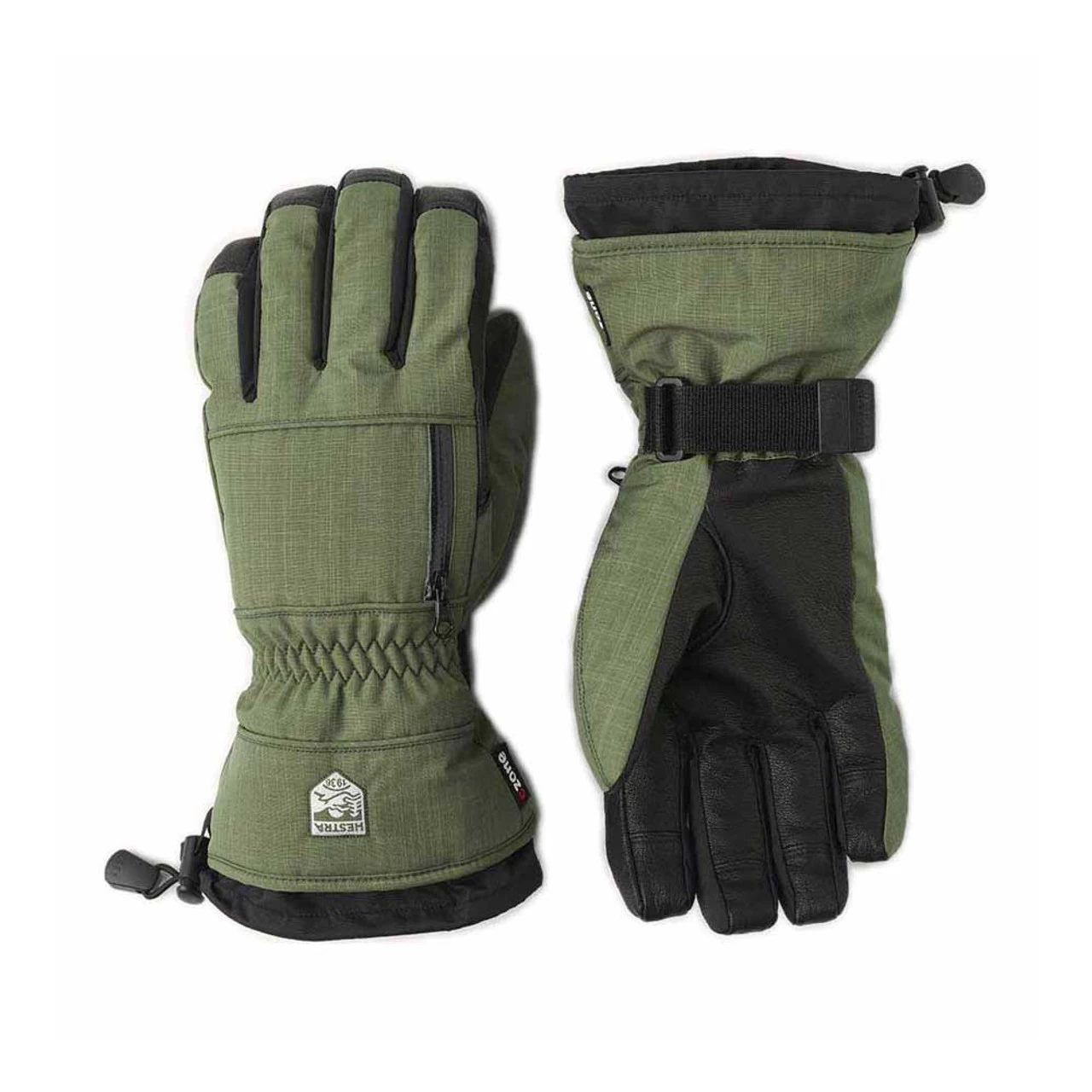 The CZone Pointer glove delivers Hestra quality and features without breaking the bank. With a windproof, waterproof, and breathable backhand and a goat leather palm, these gloves offer protection from the elements along with grip and durability. A windproof and waterproof CZone membrane locks out the cold while Fiberfill insulation and a polyester lining provide warmth and comfort. A pull strap with Velcro closure holds the glove securely on your hand and keeps cold air and snow from sneaking in the back door.