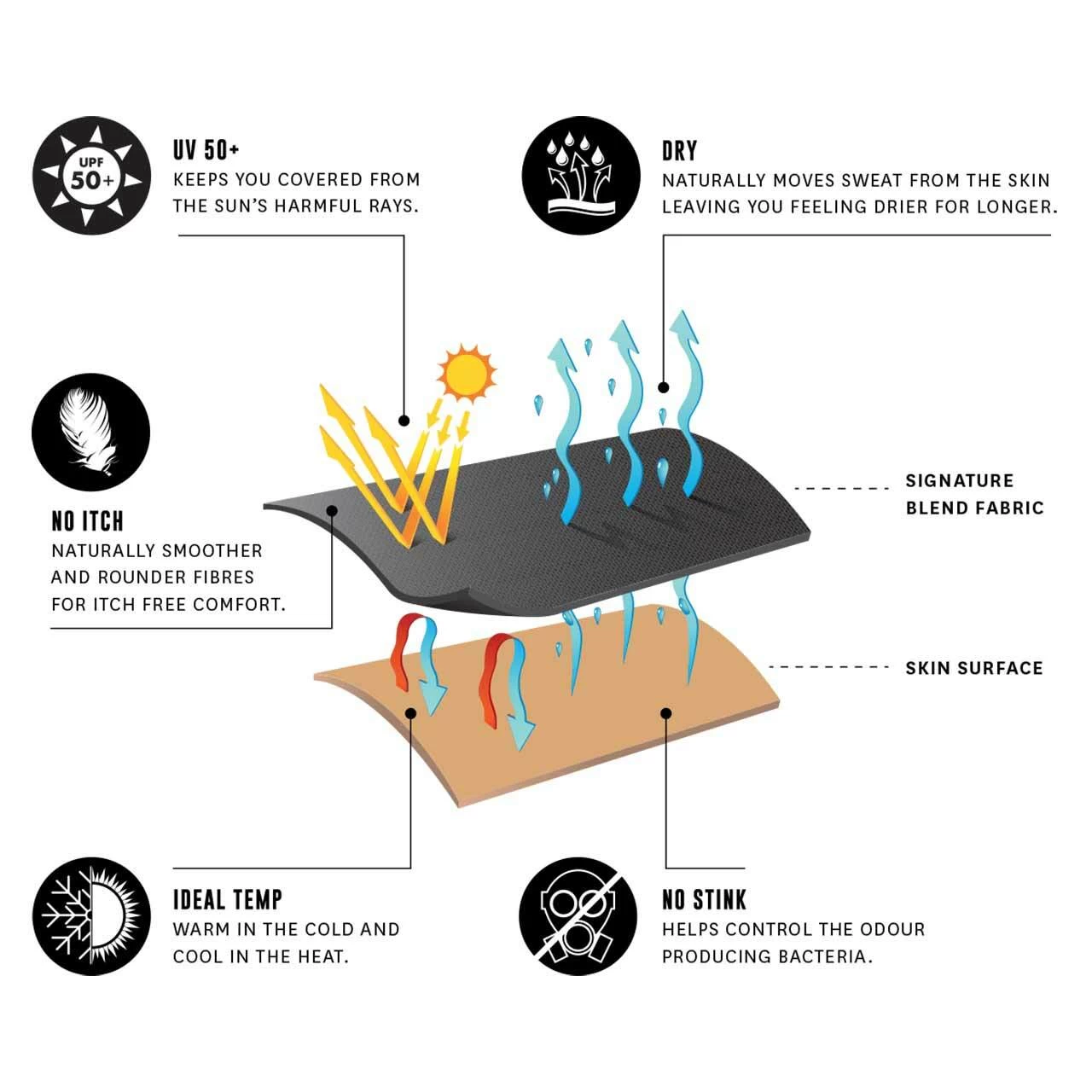 - Bamboo-derived rayon and merino wool efficiently regulate temperature